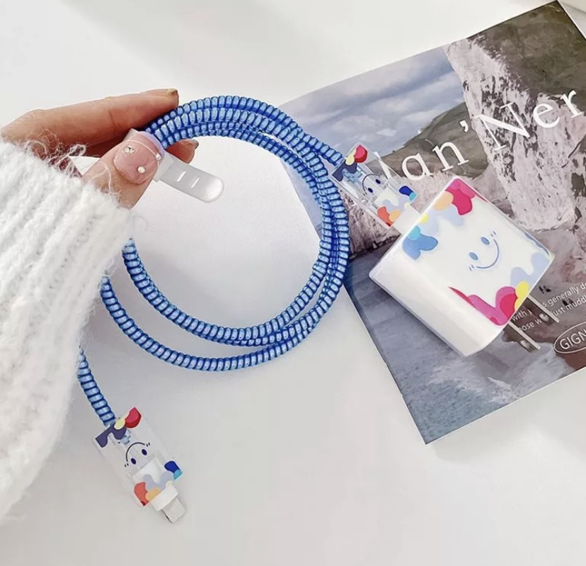 Dale un toque de alegría a lo cotidiano con nuestro Kit Protector de Cable Smile Manchas. Cada pieza está diseñada con detalles llenos de color y ternura que protegen tu cargador mientras te sacan una sonrisa. El kit incluye protector para el adaptador, el cable y las puntas, pensado para cuidar lo que te conecta con el mundo… y con tus sueños.