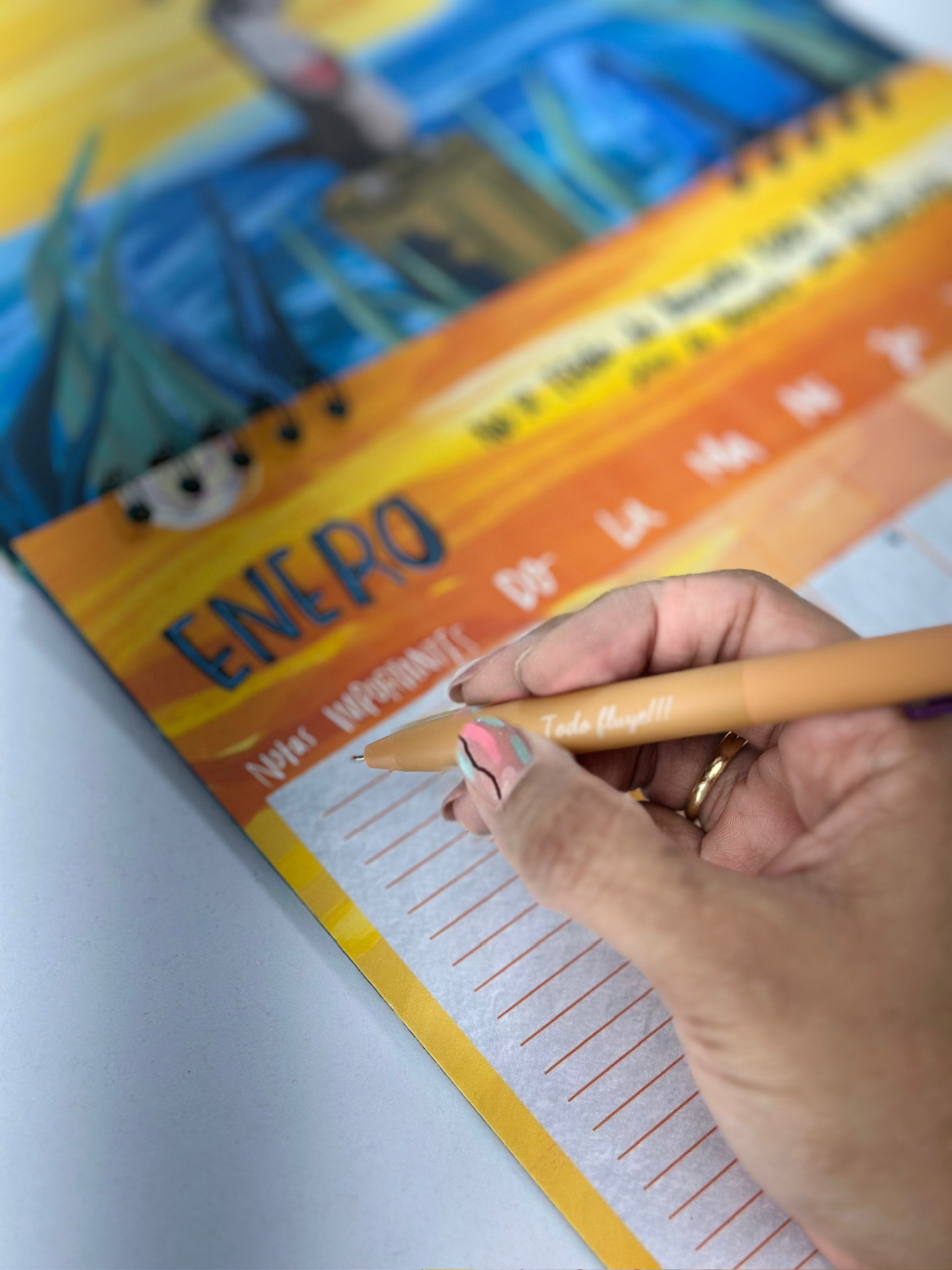Mide: 21.59 cm x 27.94 cm Cuenta con 14 hojas, portada y contraportada, anillado en dos secciones. Cada mes con un diseño, mensaje y color diferente para darle vida a tus días, con espacio para notas, ideas, sueños y planes, un habit tracker para recordar eso habitos que queremos tener en nuestras vidas. Además incluye: -Set de stickers -Lapicero -Pin -Caja con tarjeta de agradecimiento.Descubre más desde by ThaliaCe