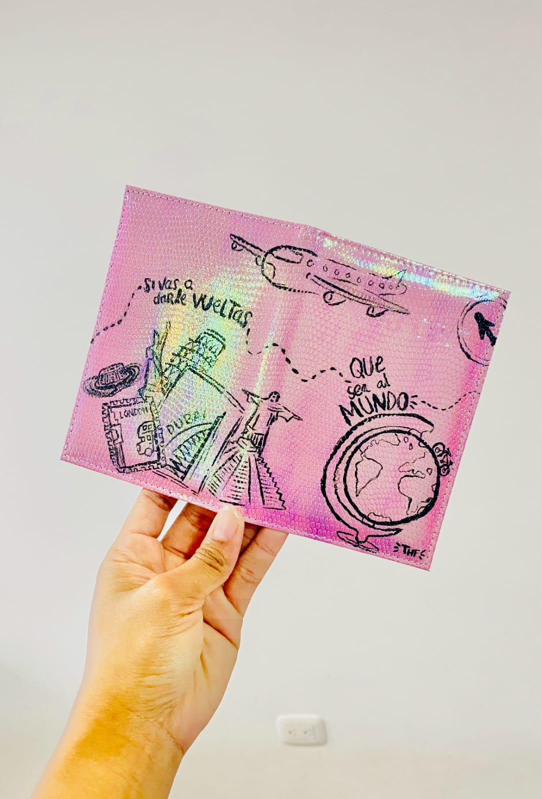 Material: Sintético/PU Tamaño: 20*14cm (tamaño de uso plegable) Peso: alrededor de 30 g/unidad Para tener en cuenta: 1. Debido monitores y a los diferentes efectos de luz, el color real puede ser un poco diferente al color de la imagen. 2. Puede haber una diferencia de +-1cm debido a la medición manual. 3. Compara las tallas detalladas con las tuyas antes de comprar.Hay vueltas que no marean, sino que despiertan. Este portapasaporte fue hecho para quienes viajan con el alma abierta, listas para llenarse de culturas, cielos nuevos y recuerdos que caben en el corazón. Su tono tornasolado y su textura especial lo convierten en una joya viajera, llena de detalles ilustrados que hablan de tu amor por el mundo.